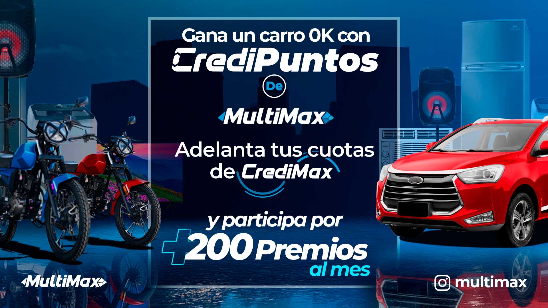 Si eres de los que adelanta sus cuotas de CrediMax o CrediMax Premium, prepárate para ganar a lo grande con el concurso mensual de más de 200 premios de MultiMax, donde podrás participar por: un carro 0 KM, 3 motocicletas, viajes todo incluido a Margarita y mucho más.