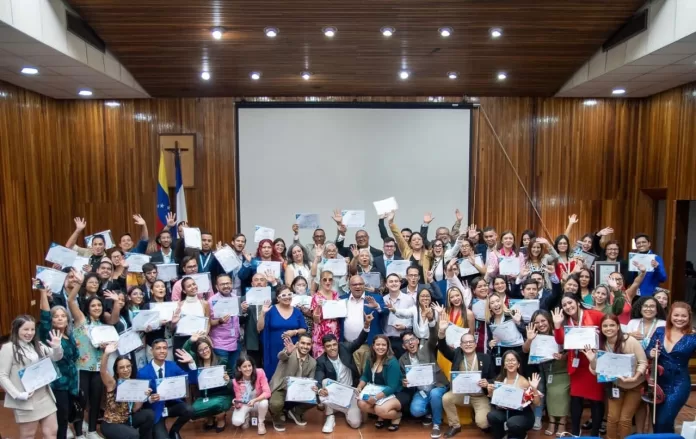 En un acto realizado en la Universidad Católica Andrés Bello, en Caracas, la coordinadora ejecutiva del proyecto MonitorDescaVE, Karillyan García, acompañada de los profesores y socios quienes formaron a los ahora líderes emergentes defensores en derechos humanos, dieron la bienvenida a los egresados de todo el país.