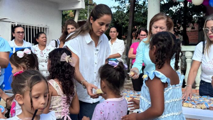 (Prensa Alcaldía).- Comer sano y sabroso con lo que se tiene en casa, sin necesidad de gastar grandes cantidades de dinero, es totalmente posible y representa un beneficio para la salud de los niños. Bajo esta premisa, este viernes en horas de la tarde se dio inicio al plan piloto “Comida Saludable”, una iniciativa impulsada por la Primera Dama del municipio San Diego, Emilia Pérez de Jurado, orientada a promover hábitos alimenticios sanos, por ello se efectuó una visita a diferentes comunidades llevándole a los más pequeños de la casa una merienda nutritiva.