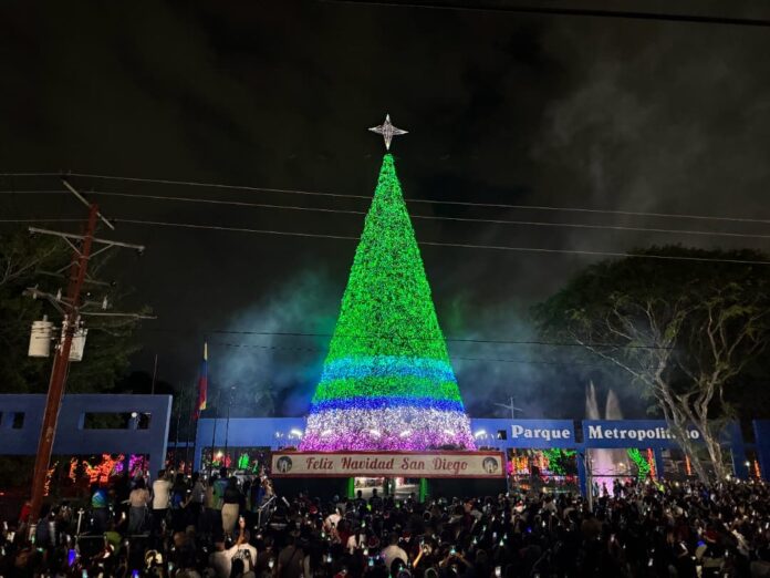 (Prensa Alcaldía).- El municipio San Diego se convirtió la noche de este viernes en el punto de encuentro de los carabobeños que se dieron cita en la primera etapa del Parque Metropolitano para celebrar el inicio de la Navidad, con el encendido del emblemático árbol adornado con más de 7 millones de luces LED GRB, que proporcionan un juego de colores y efectos visuales, ofreciendo un espectáculo deslumbrante.